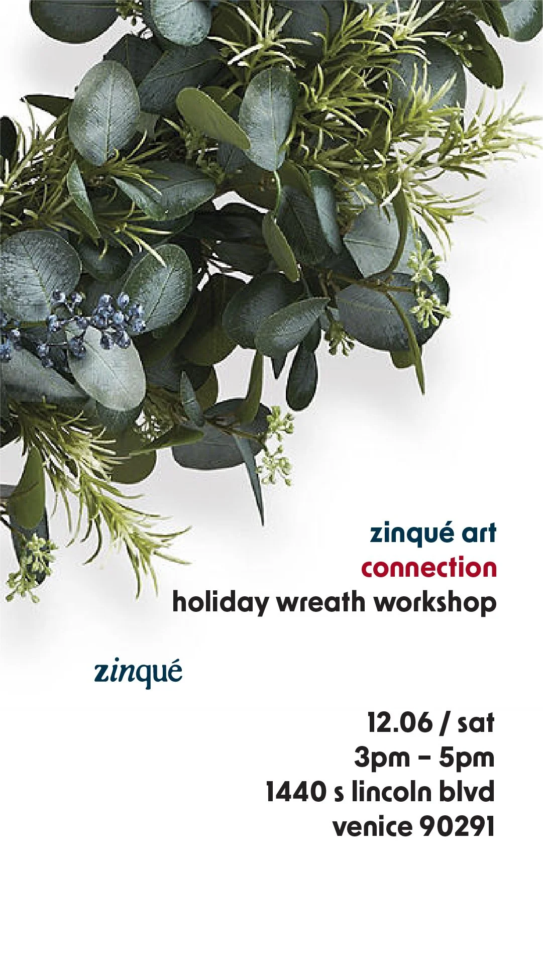 Zinqué Art Connection : Holiday Wreath Workshop | Venice