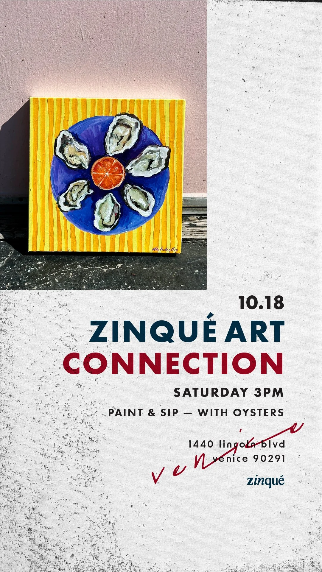 Zinqué Art Connection : Paint & Sip – with Oysters!! | Venice