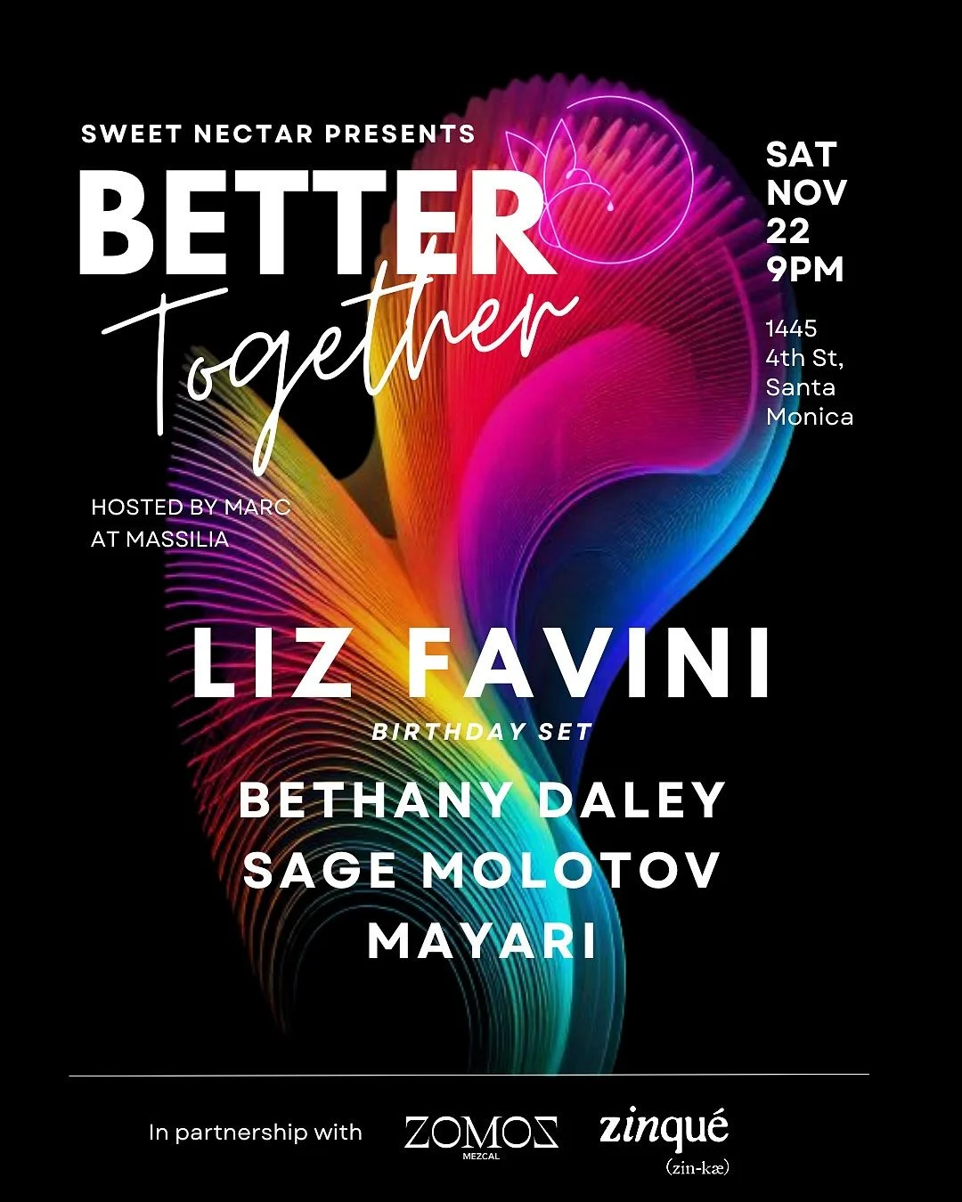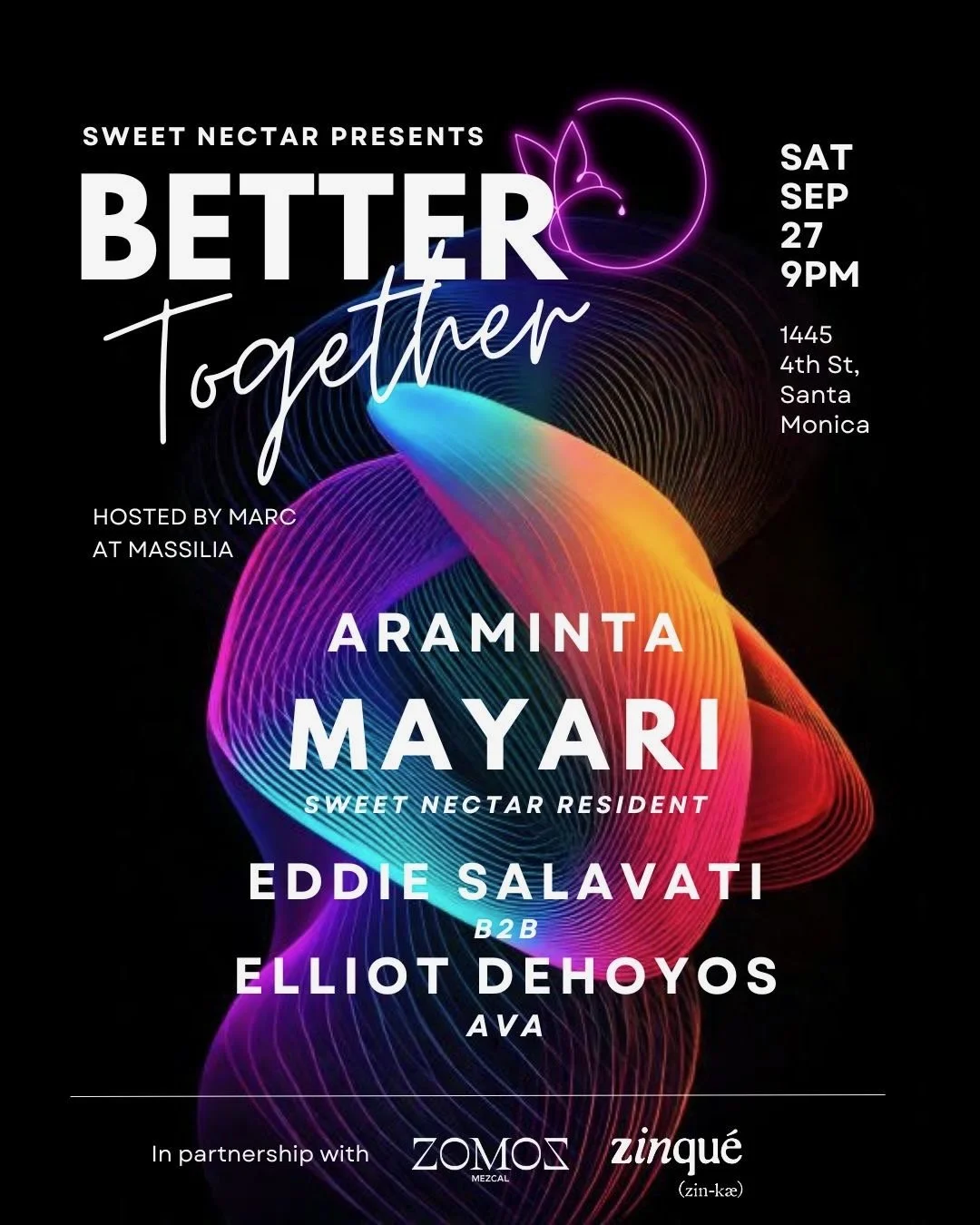 Better Together by Sweet Nectar is where connection, community & pure dance floor magic come alive! Designed for those who love house music, good energy & making new friends, these events are all about celebrating togetherness. Think unforgettable beats, beautiful souls & that electric feeling you get when the vibe is just right.